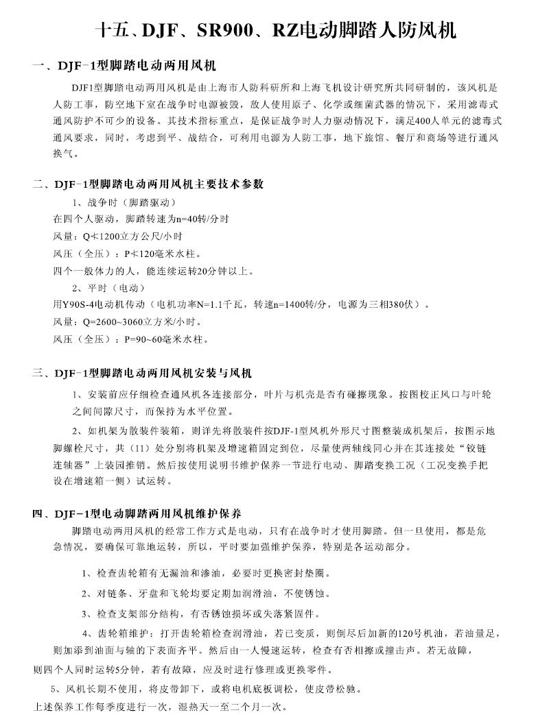 DJF、SR900、RZ人防風(fēng)機